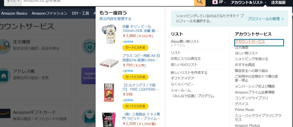 Amazonでは、専用のAmazonアカウントを作成することで、ショッピングなどのお買い物が可能です。