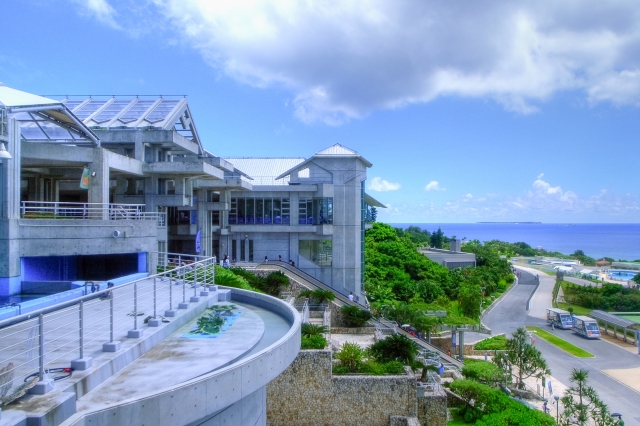 沖縄美ら海水族館は、ジンベエザメやマンタが泳ぐ大水槽をはじめ、沖縄の海の生き物を間近で観察できます。