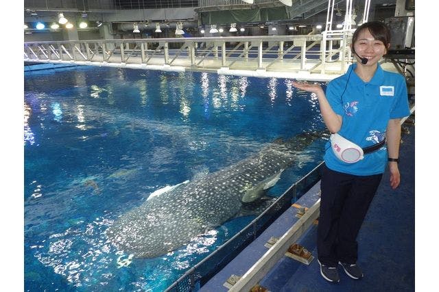 美ら海水族館では、ジンベイザメがいる巨大水槽の「エサやり」を、1日2回開催しています。