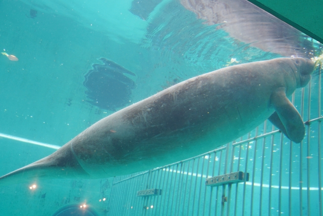 人魚伝説のモデルとも言われるマナティーが、目の前で見られる「マナティー館」。