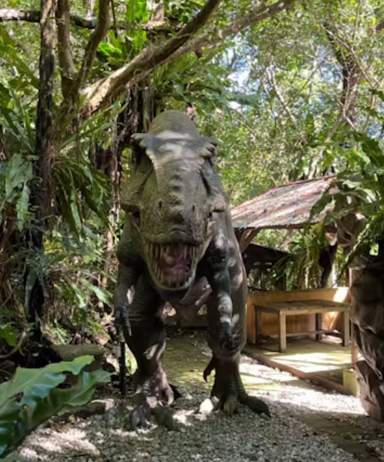 原生林の中で響く鳴き声や、首やしっぽが動く姿は、リアルすぎて泣き出す子もいるほど、本物っぽくなっていますよ。
