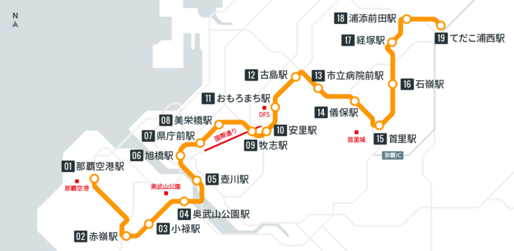 全長約1.6kmあるので、最寄りの駅は「県庁前駅」「美栄橋駅」「牧志駅」の3つあります。目的の場所にあわせて、利用してみてくださいね。