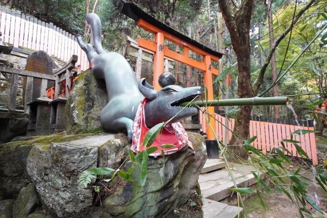 伏見稲荷大社の境内には、「狐(きつね)」がたくさんあります。