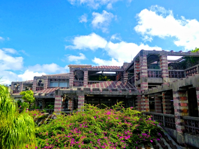 バス停でもある「名護市役所」は、観光名所としても有名な建物です。