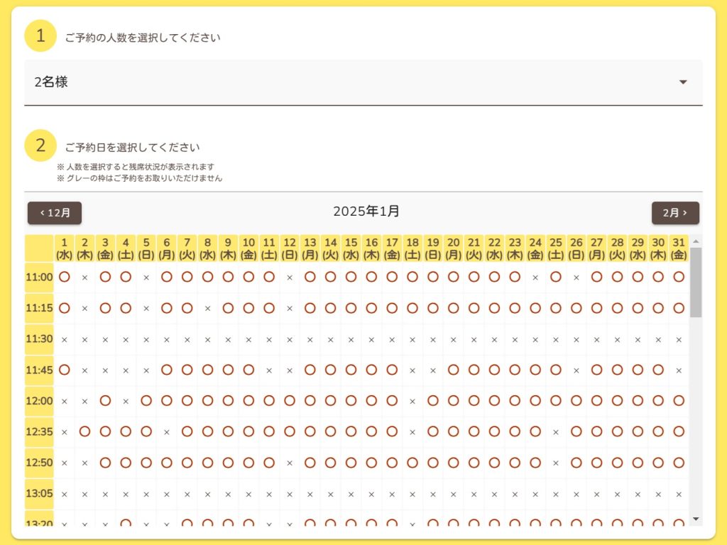 公式サイトから、予約が可能です。毎月10日18:00より、翌月末までの予約受付がスタートします。