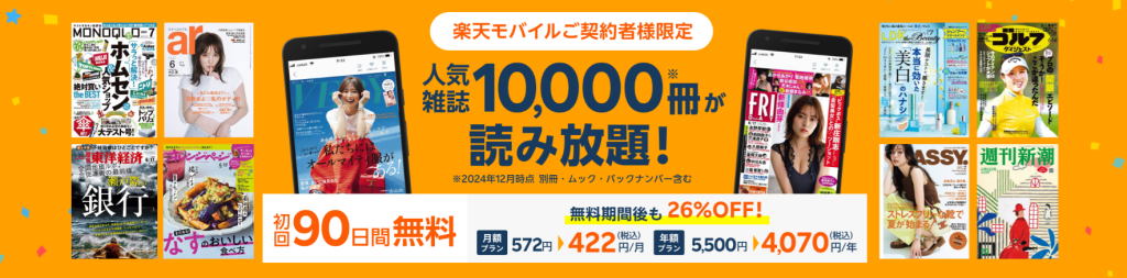 「楽天マガジン」とは、楽天が提供している、定額の電子書籍サービスです。