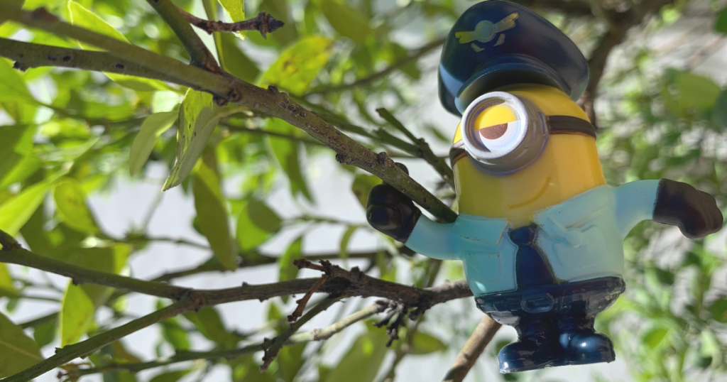 建物やベンチには、「怪盗グルー」のマークやバナナのモチーフが隠されています。どこにあるか、探しながら歩いてみてくださいね。